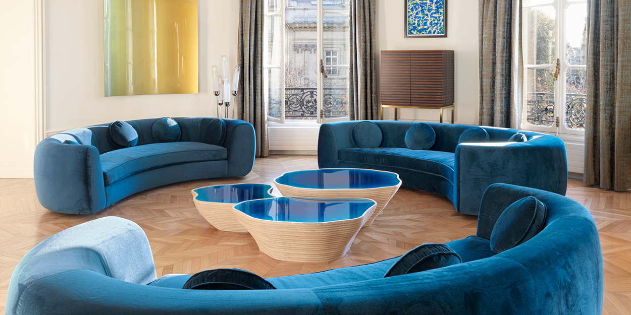 Après l'obtention de mon diplôme de l'école d'architecture intérieure CREAD, j'ai appris en autodidacte le travail de la résine, puis fabriqué les 7 premières tables basses de ma collection.