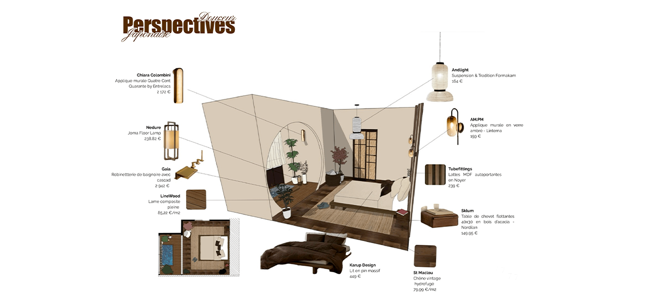 "Pour ce projet de groupe, nous devions rénover une suite parentale. Notre volonté était de créer un espace unique dans une ambiance Japandi et cocooning afin que le couple s’y sente bien et en toute intimité.